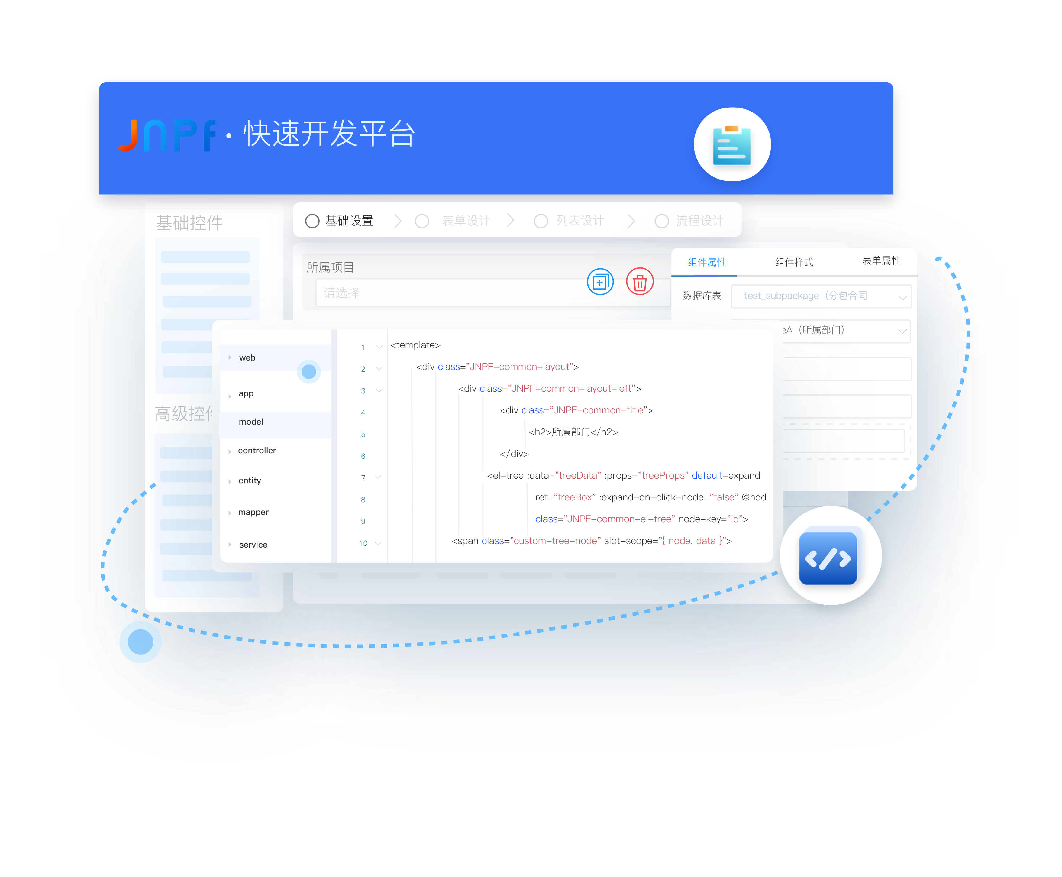 通过在线开发、流程引擎、代码生成等核心功能快速构建相关业务系统,可以帮助开发者实现5分钟配置一张业务表单、5小时搭建一个专属应用、5天落地一个管理方案,并且易于维护、易于扩展、安全稳定,助力企业打通数字化的“最后一公里”。