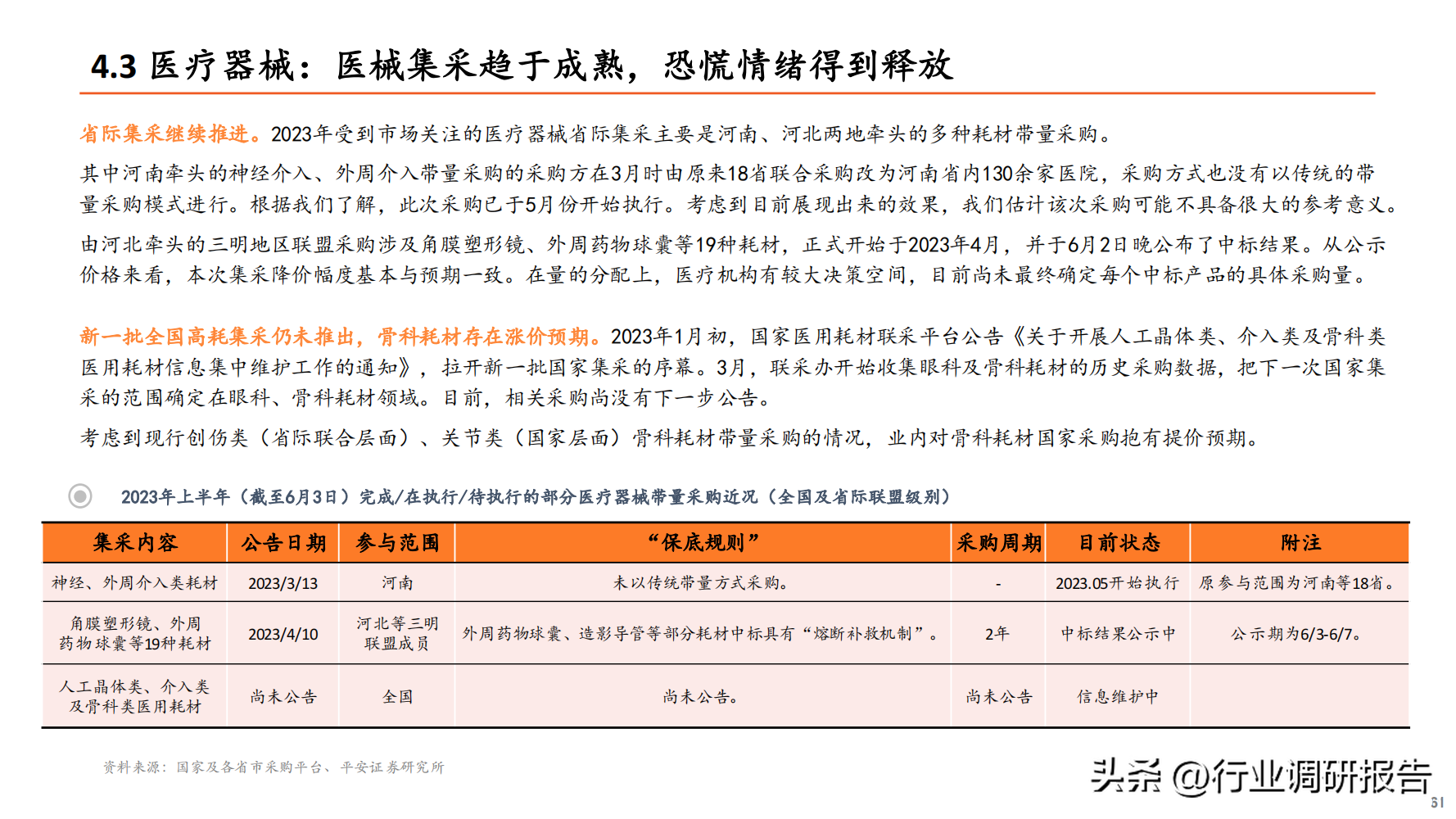 4、器械:疫后复苏+集采恐慌释放,看好后续表现