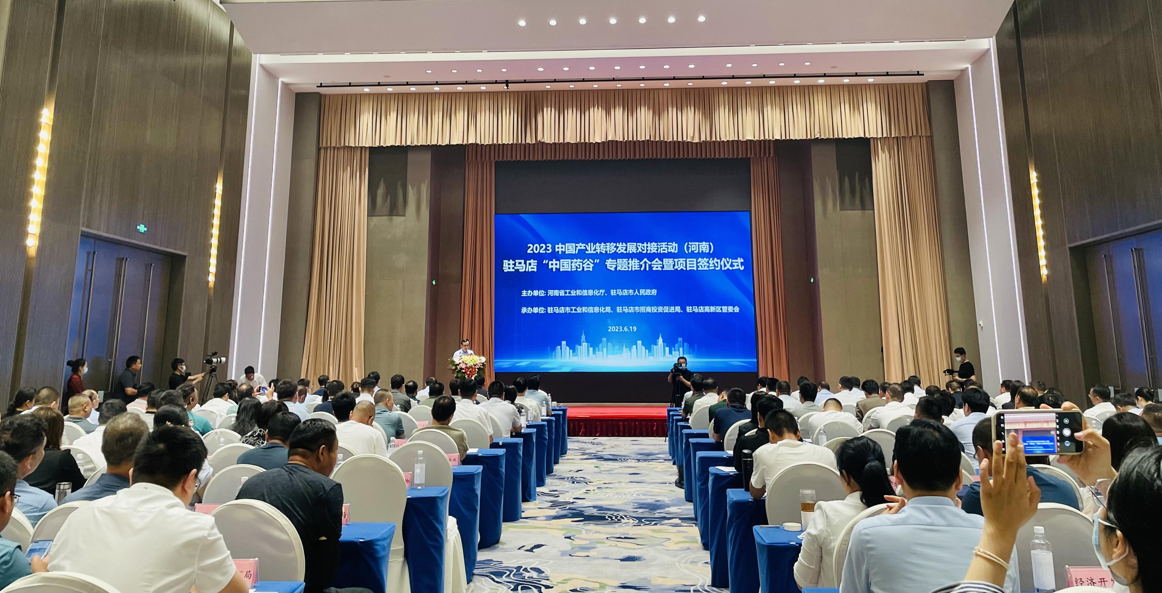 6月19日,2023中国(河南)产业转移发展对接活动在郑州召开。当天下午,在驻马店产业对接专场,省工信厅、驻马店市委、市工信局相关负责人及来自全国70多家重点医药企业客商代表齐聚郑州,聚焦驻马店“中国药谷”建设进行宣传推介与合作对接。