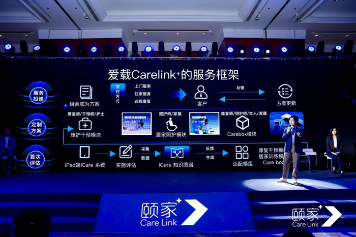 颐家重点发布了SCL居家康养服务协作网络,其包含颐家两大核心数字技术:智能康养服务体系爱载Carelink+和人工智能居家服务监管平台AHC。